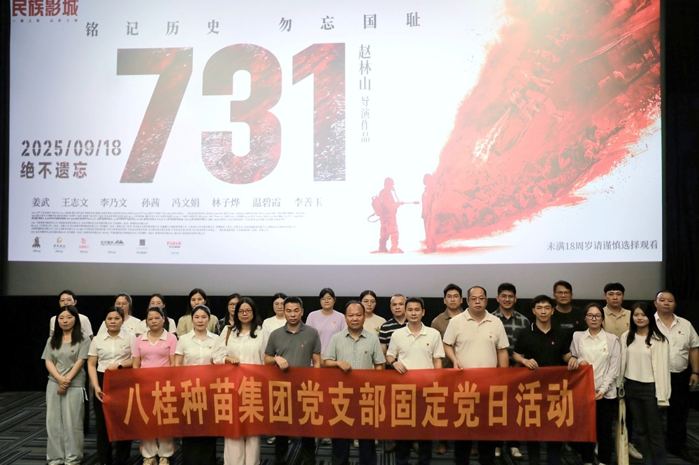 八桂种苗集团党支部30名党员前往南宁市青秀区民族影城,集中观看历史题材电影《731》。该片以真实历史事件为背景,深刻揭露了日本军国主义的残暴罪行,生动展现了中华民族在苦难中不屈不挠的抗争精神。通过观影活动,党员们进一步深化了对历史的认知,更加珍惜来之不易的和平,在思想上进一步筑牢了责任意识与爱国情怀的根基。