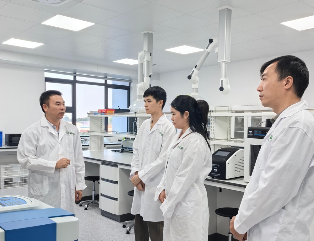 2025年10月16日,南宁市科技局高新技术科玉康龙、成果转化与区域创新科邓贞贞组成专家组前往八桂种苗集团调研指导工作,实地考察了八桂种苗集团科教组培厂、林木生物技术和遗传育种实验室。集团副总经理庞贞武陪同调研。
